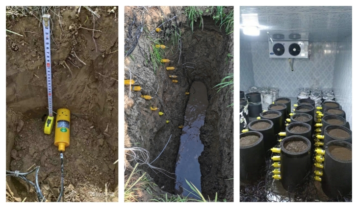 土壤電導率即可單點監測,也可多點梯度監測。測試時需將土壤電導率傳感器完全埋入土壤中并保證底端電極充分與被測土壤接觸,以保證測試數據的準確性。