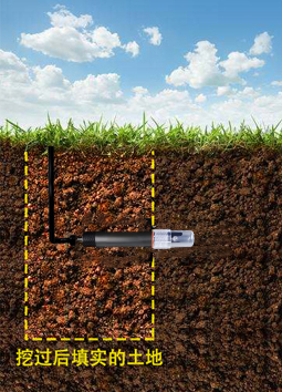 垂直挖直徑>20cm的坑,按照測量需要,在既定的深度將傳感器水平插入坑壁,將坑填埋嚴(yán)實(shí),穩(wěn)定一段時(shí)間后,即可進(jìn)行連續(xù)數(shù)天,數(shù)月乃至更長時(shí)間的測量和記錄。