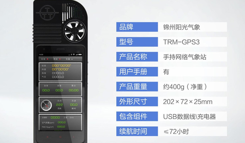 TRM-GPS1手持網絡氣象站 | (即風速、風向、氣流、環境溫濕度、海拔、風寒、熱指數、露點、電子羅盤、太陽輻射,GIS電子地圖) |