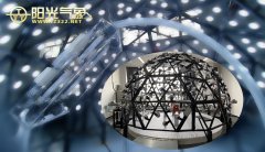 采用可拆卸獨立單元組裝形式,實現大直徑大跨度的安裝,方便設備重新拆裝。矩形鋼構框架,分為六邊形和五邊形2種結構單元,每個單元有六個或五個三角型,每個三角形內有等大的三個擴散光源。為便于實驗和參觀展示,主體結構留有一個寬約2米、高2米的入口。