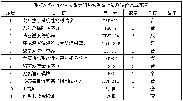 1、TRM-2A型太陽熱水系統性能測試儀用于檢測太陽能熱水工程系統的熱性能,其中主要包括對系統的得熱量、貯熱水箱熱損系數等進行監測,同時實時顯示各路數據,檢測數據可自動存儲。