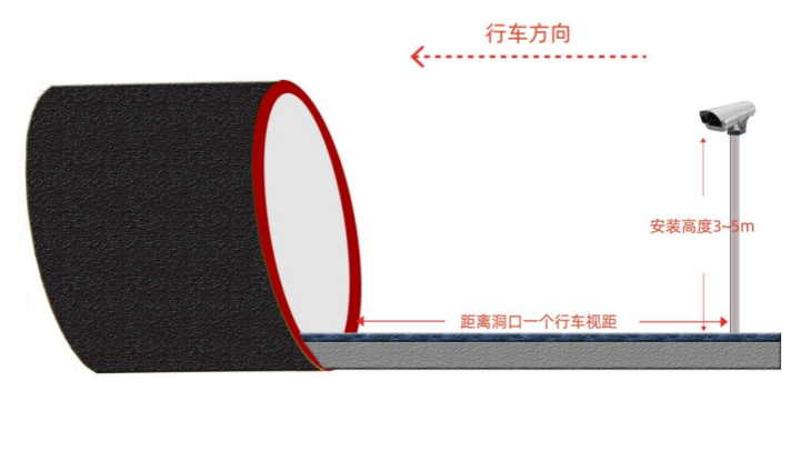 如下圖所示,隧道亮度檢測器的安裝位置應(yīng)明確設(shè)定于隧道外部之立柱上,確保其安裝高度維持在3米至5米的合理范圍內(nèi),以精準地監(jiān)測并記錄隧道口的光照強度。此外,傳感器探頭的朝向需精確對準隧道洞口中心位置,旨在采集并傳輸最為精確的光亮度數(shù)據(jù),以確保監(jiān)測結(jié)果的準確性及可靠性。