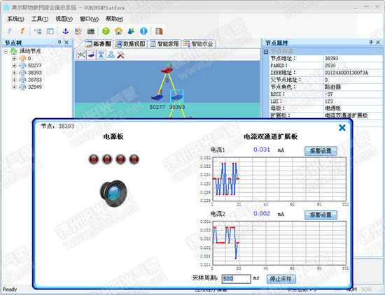 采用物聯網中間件架構,實現Zigbee網絡拓撲顯示、傳感器采集、資源控制、數據保存及歷史數據查詢。開放PC應用層調用接口,讓學生可以自己編程設計,實現相應的效果。